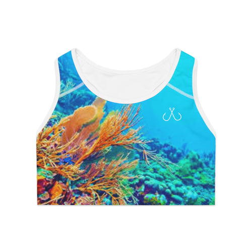 Ocean Blue Deep Drift Hooked Horizon Co. Stylish Sports Bra for Active Women, Workout Top, Gym Essential, Fitness Apparel, Athleisure Wear, Yoga Gear -